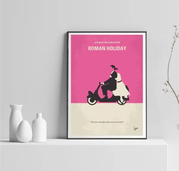 Roman Holiday Minimalist Poster - Gold Hollywood Movie Art