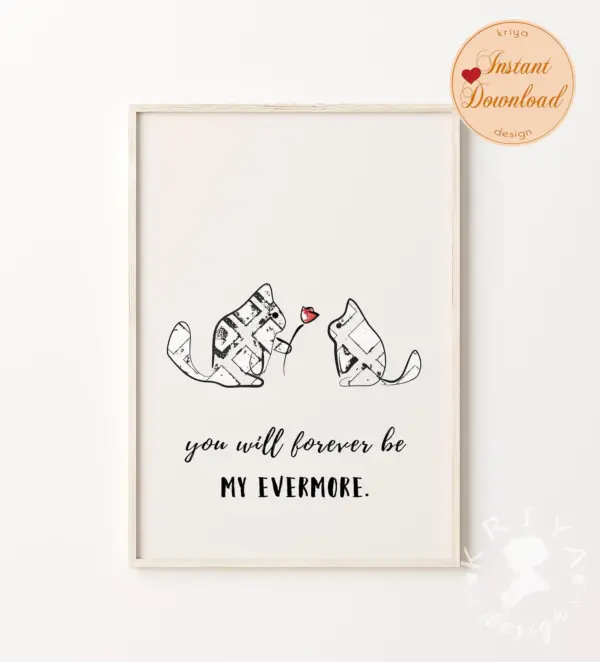 Romantic Cat Wall Art Print - Anniversary Gift for Cat Lovers