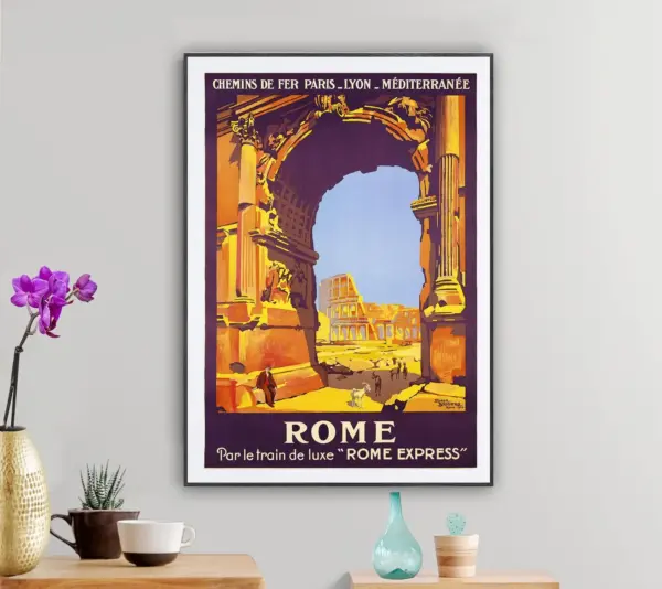 Rome Par Le Train Des Luxe Rome Express Vintage Travel Poster Poster Print Sticker Or Canvas Print Gift Idea