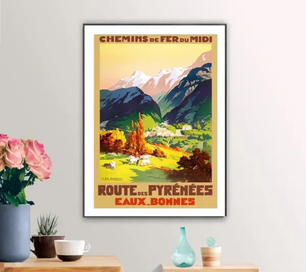 Route De Pyrenees Eaux Bonnes Vintage Travel Poster Poster Paper Sticker Or Canvas Print Gift Idea