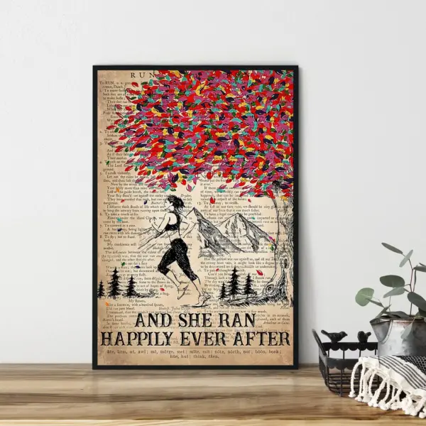 Running And She Ran Happily Ever After Poster Running Poster Running Lovers Poster Girl Love Running Home Decor Wall Art 0904