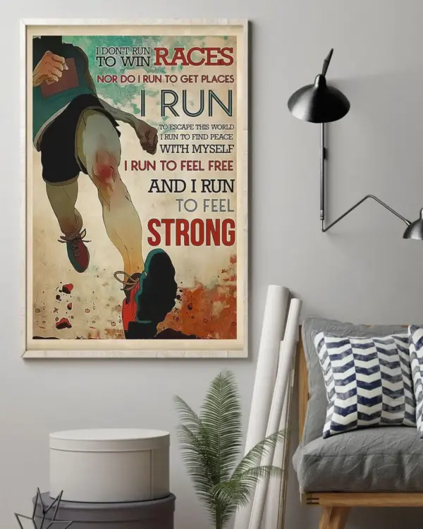 Running Poster Athletic Trainer Poster Running Lovers Poster Gift For Runner I Don T Run To Win Races Poster I Run To Feel Strong Poster