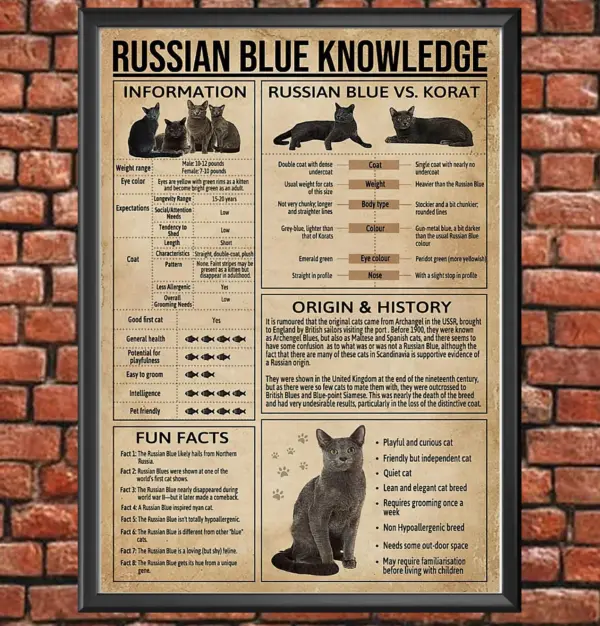 Russian Blue Cat Knowledge Poster Framed Matte Canvas