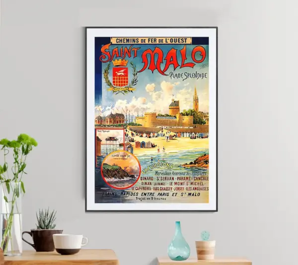 Saint Malo France Vintage Travel Poster Poster Paper Sticker Or Canvas Print Gift Idea