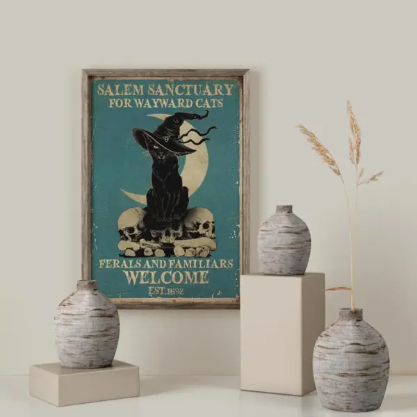 Salem Sanctuary For Wayward Cats Ferals And Familiars Welcome Poster Black Cat Funny Poster Wall Decor Poster No Framer