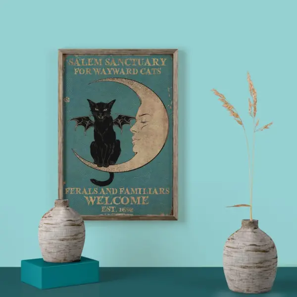 Salem Sanctuary For Wayward Cats Poster Black Cat Print Cat Lover Gift Home Decor Wall Decor Cat Artwork Wall Art
