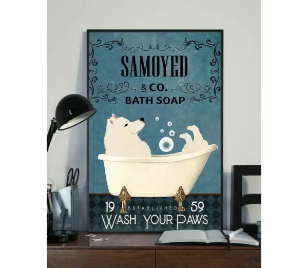 Samoyed Co Bath Soap Poster Wash Your Paws Wall Art Dog Lovers Print Lovely Dog Wall Art Samoyed Dog Poster Samoyed Lovers Gift