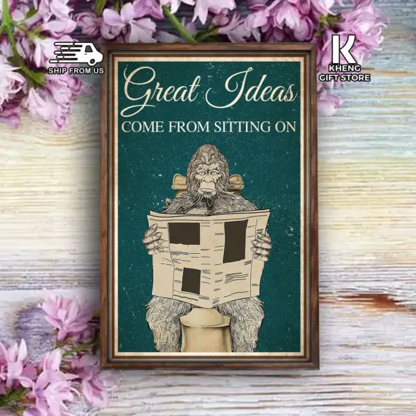 Sasquatch Bigfoot Great Ideas Come From Bigfoot Poster Wall Art Print Home Living Restroom Toilet Decor Poster
