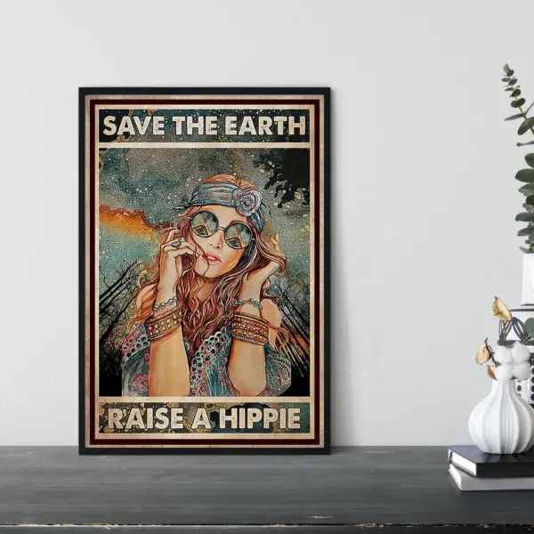 Save The Earth Raise A Hippie Poster Hippie Girls Art Print Vintage Bohemian Girl Poster Gift For Her Retro Wall Art No Frame