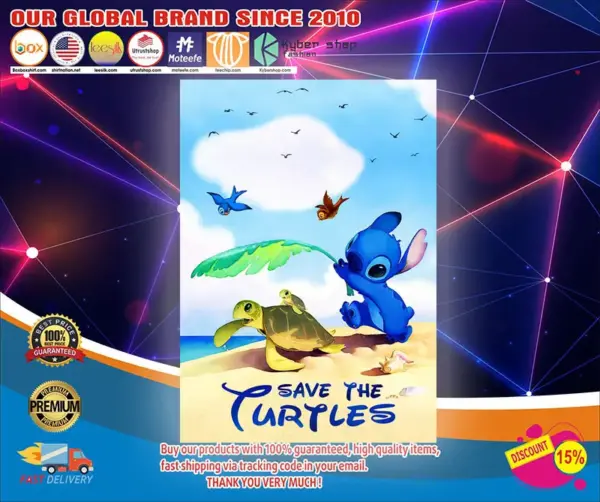 Ocean Conservation Poster - Save the Sea Turtles Embroidery Art Print