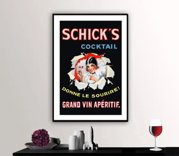 Schick S Cocktail Grand Vin Aperitif Vintage Food Drink Poster Poster Paper Sticker Or Canvas Print Gift Idea