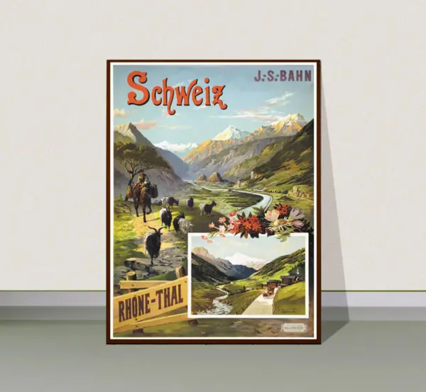 Schweiz Rhone Thal Vintage Travel Poster Poster Paper Sticker Or Canvas Print Gift Idea