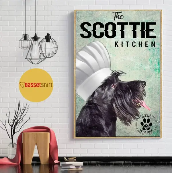 Scottish Terier The Kitchen No Paws On The Table Poster Canvas