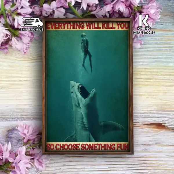 Scuba Diving Dive Diver And Shark Everything Will Kill You So Choose Something Fun Poster Home Living Decor Poster