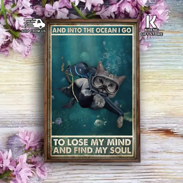 Scuba Diving Dive Diver Cat Lovers And Into The Ocean I Go To Lose My Mind Poster Home Living Decor Poster