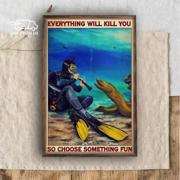 Scuba Diving Diver And Electric Eel Poster Everything Will Kill You So Choose Something Fun Poster Home Living Decor Poster