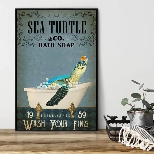 Sea Turtle Bath Soap Wash Your Fins Poster