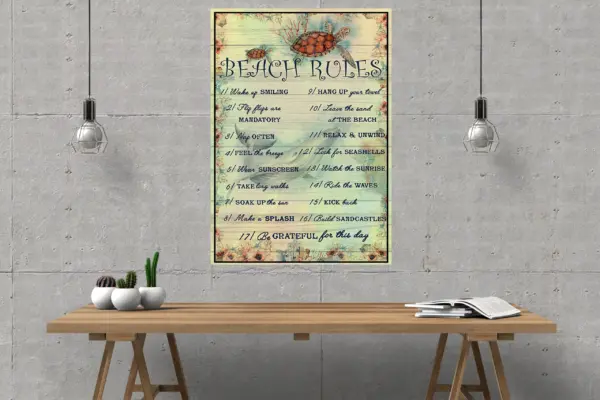 Sea Turtle Beach Rules Poster Framed Matte Canvas