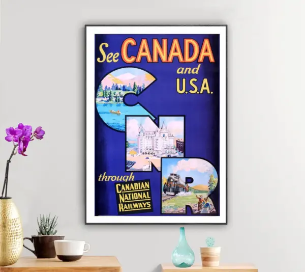 See Canada And Usa Vintage Travel Poster Poster Paper Sticker Or Canvas Print Gift Idea