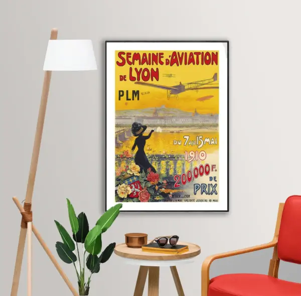 Semaine D Aviation De Lyon 1910 France Vintage Poster Poster Paper Sticker Or Canvas Print Gift Idea Christmas Gift