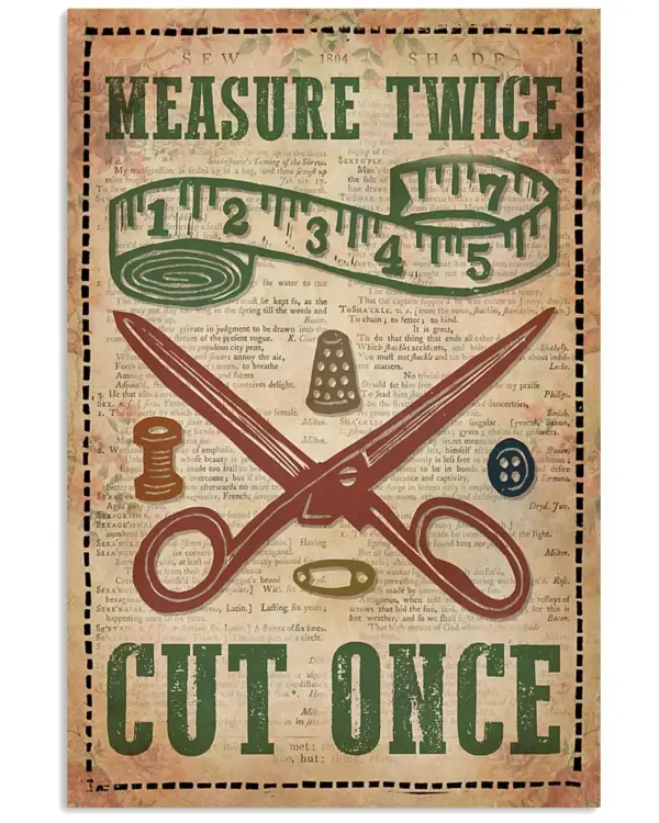 Sewing Measure Twice Cut Once Poster