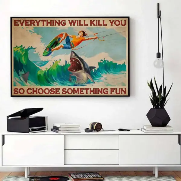 Shark Kitesurfing Everything Will Kill You So Choose Something Fun Horizontal Canvas