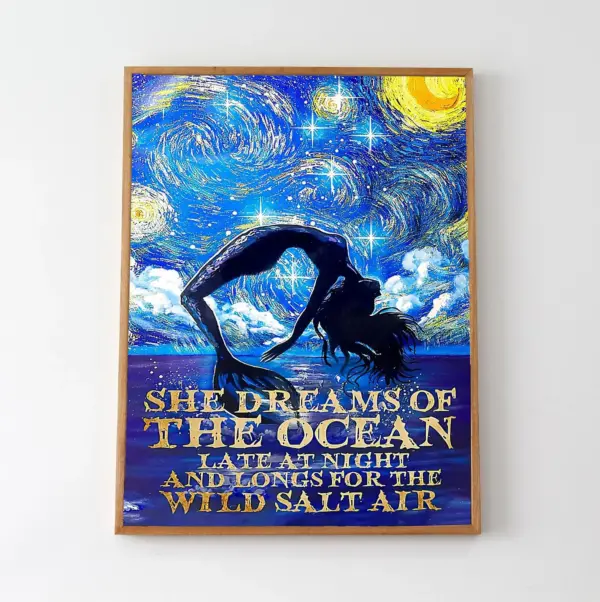 She Dreams Of The Ocean Late At Night And Long For The Wild Salt Air Art Mermaid Painting Mermaid Wall Art Best Gift For Mermaid Lover