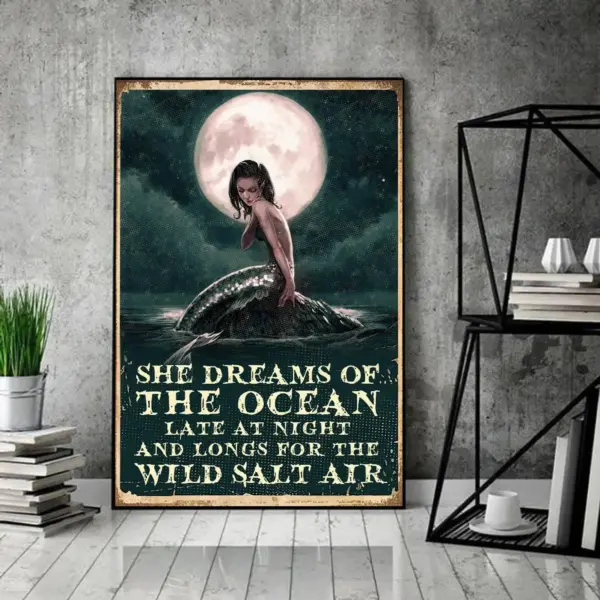 She Dreams Of The Ocean Late At Night Poster Mermaid Poster Mermaid Lovers Poster Gift Mermaid Gift Boho Hippie Vintage Poster Huh 0801F