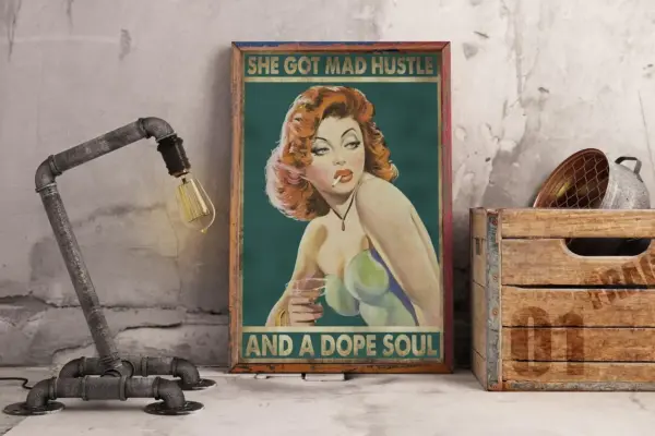 She Got Mad Hustle And A Dope Soul Poster Afro Girl Poster African American Woman Vintage Poster Yoga Art Print Signs For Home
