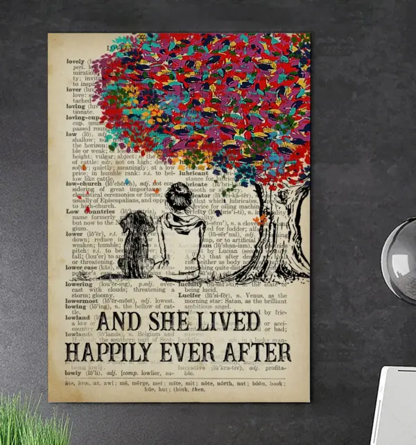 She Lived Happily Ever After Poster Dogs Lover Canvas Print Dog Lover Gift Girl And Dog Poster Dog Art Print Custom Poster Unique Gift