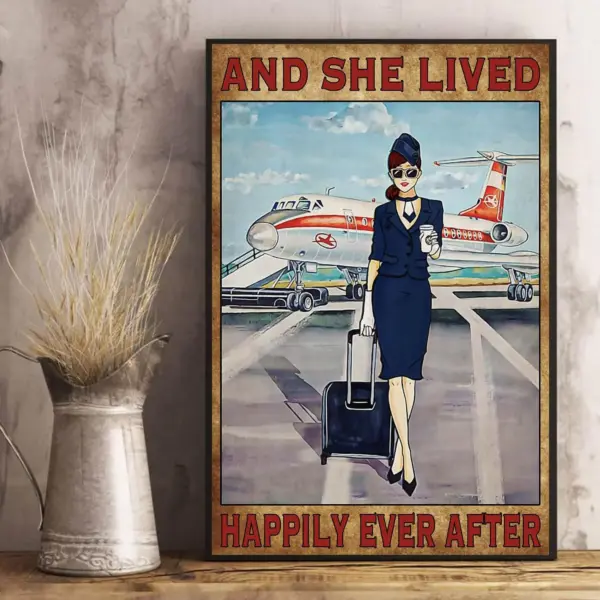 She Lived Happily Ever After Poster Flight Attendant Art Print Airline Attendant Poster Daughter Gift Air Stewardess Print No Frame