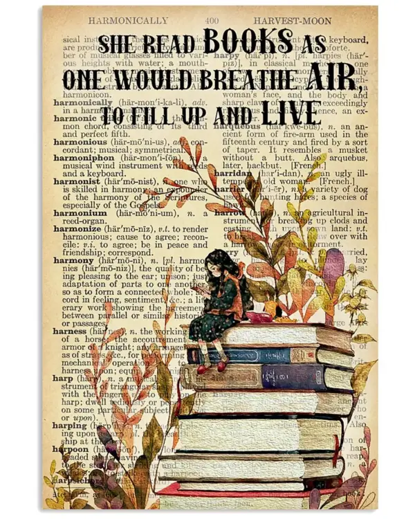 She Read Books As One Would Breathe Air To Fill Up And Live Poster Wall Art Cool Poster Home Decor No Frame