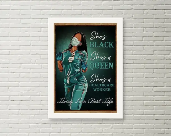 She S Black She S A Queen She S A Healthcare Worker Poster African Nurse Poster Feminist Print Black Girl Art Nurse Life Home Decor
