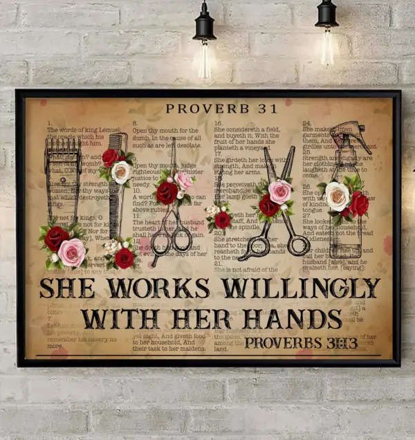 She Works Willingly With Her Hands Poster Poster Print Art Print Best Gift Ever Home Decor Poster Prints Hairstylist Poster Hair
