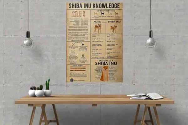 Shiba Inu Knowledge Poster Framed Matte Canvas