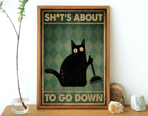 Shit About To Go Down Poster Funny Cat Black Cat Lover Poster Funny Toilet Poster No Frame