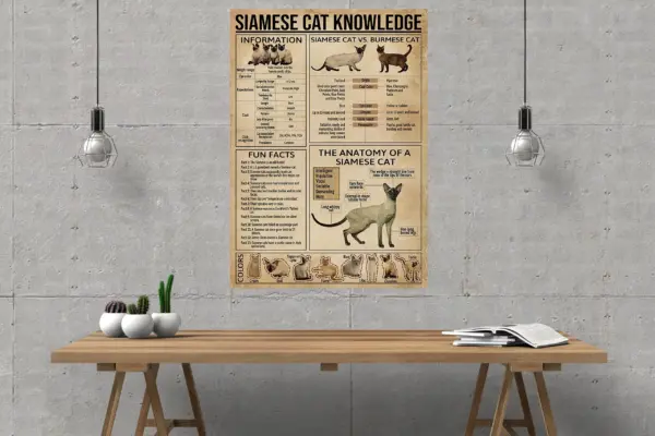 Siamese Cat Knowledge Poster Framed Matte Canvas