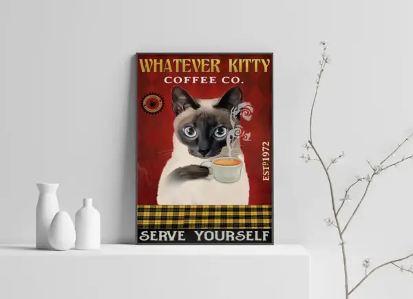 Siamese Cat Whatever Kitty Coffee Co Serve Yourself Poster Funny Cat Poster Serve Yourself Poster Vintage Style Poster No Frame Cat Poster