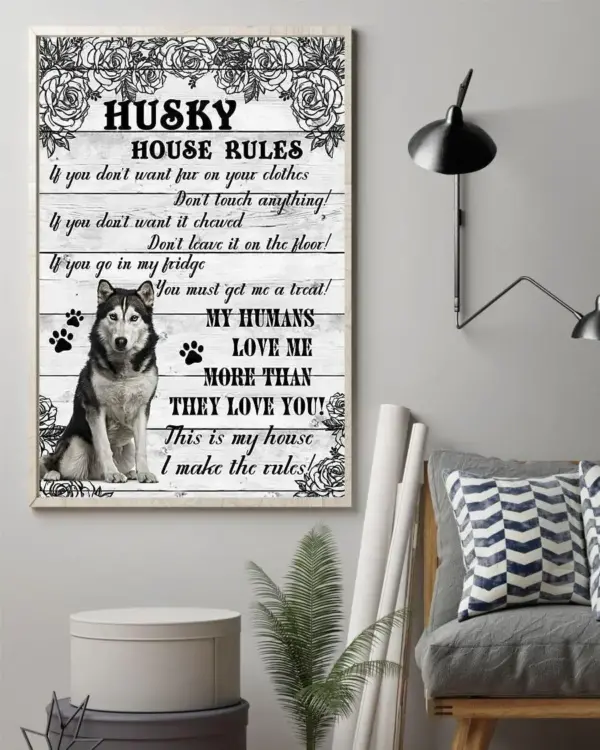Siberian Husky House Rules Vertical Poster Dog Mom Poster Siberian Husky Lover Poster Vitage Poster Framed Matte Canvas
