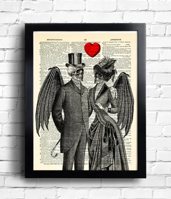 Skeleton Couple Wings Poster Skull Heart Love Art Print Gothic Bedroom Decor Skeleton Love Artwork Anniversary Gift Anatomy Wall Decor 152