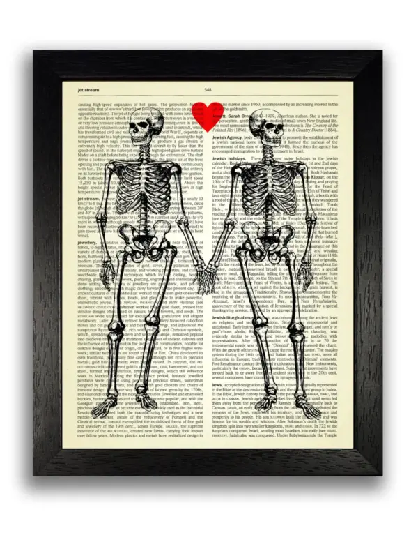 Skeleton Love Art Print Antique Book Page Gothic Art Love Poster Love Heart Anniversary Gift Present For Girlfriend Wedding Gift Art
