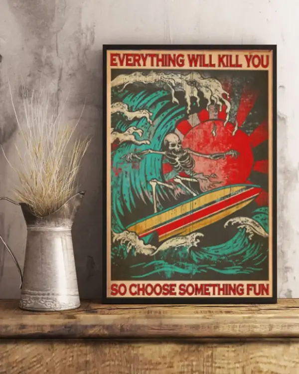 Skeleton Poster Everything Will Kill You So Choose Something Fun Skeleton Surfing Funny Skeleton Surfing Poster Vertical Poster No Framed