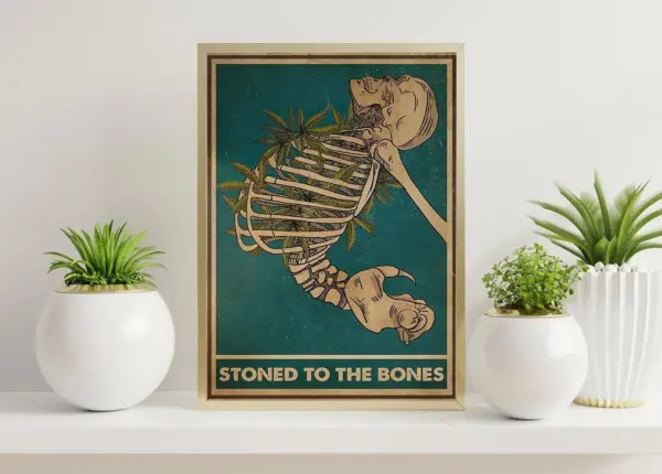 Vintage Skeleton Cannabis Poster - Stoned to the Bones Weed Art
