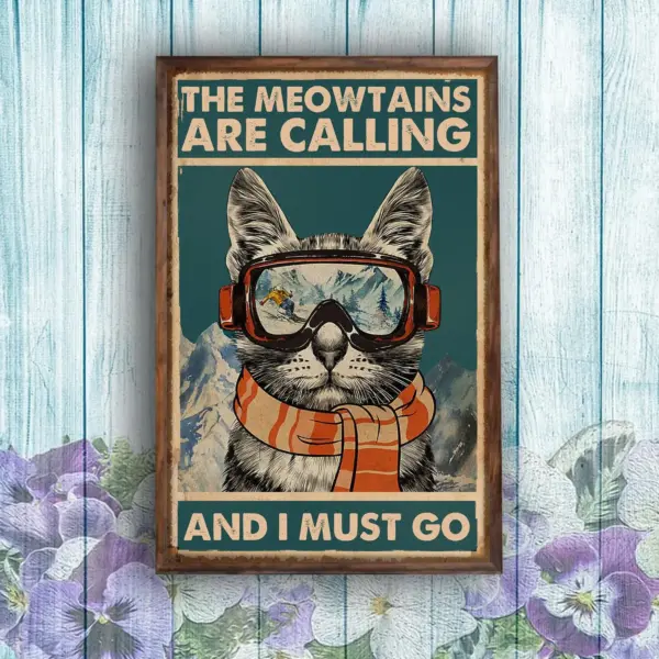 Ski Skier Skiing And Cat Lovers The Meowtains Are Calling And I Must Go Poster Home Living Decor Poster