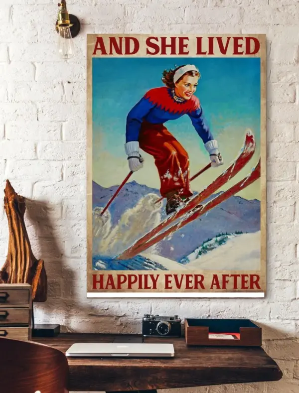 Skiing And She Lived Happily Ever After Vertical Print Poster