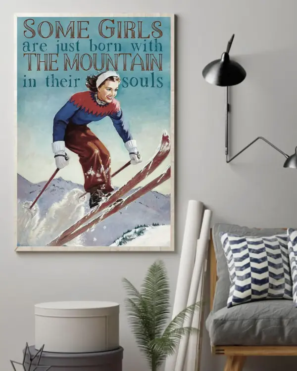 Capture the spirit of winter sports with this stunning skiing-themed vertical poster featuring a dynamic snow girl design, perfect for mountain enthusiasts and winter decor.