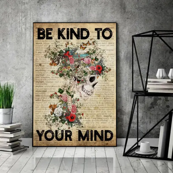 Skull Be Kind To Your Mind Poster Skull Poster Floral Poster Dictionary Print Flower Skull Poster Boho Hippie Vintage Poster Huh 0801E