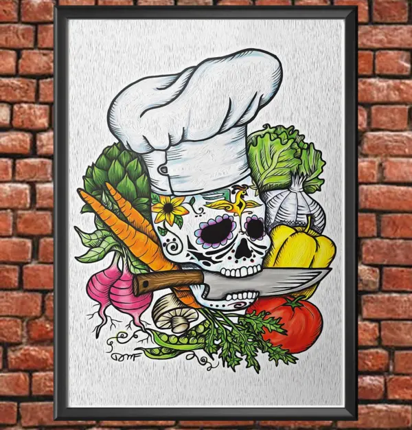 Skull Chef With Vegetable Poster Framed Matte Canvas
