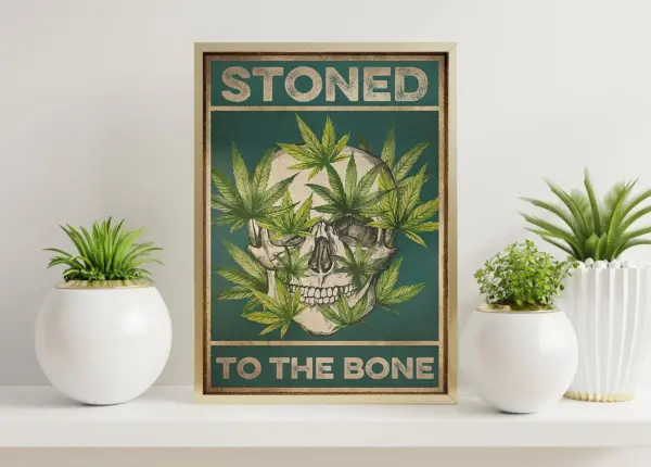 Vintage Cannabis Skull Poster - Stoned To The Bones Weed Art