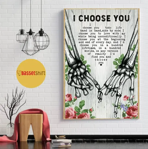 Skull Skeleton Hand In Hand Flowers I Choose You Poster